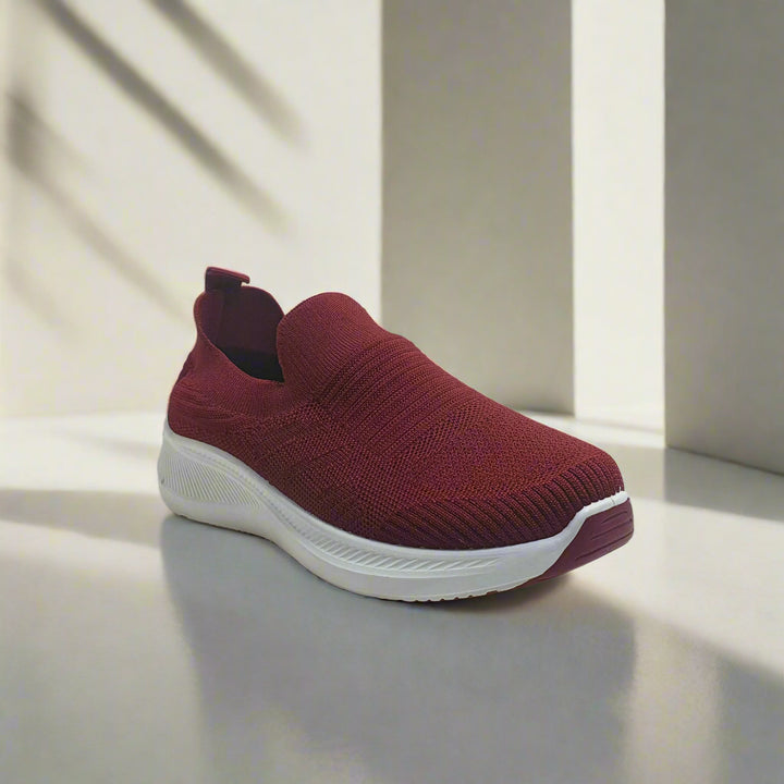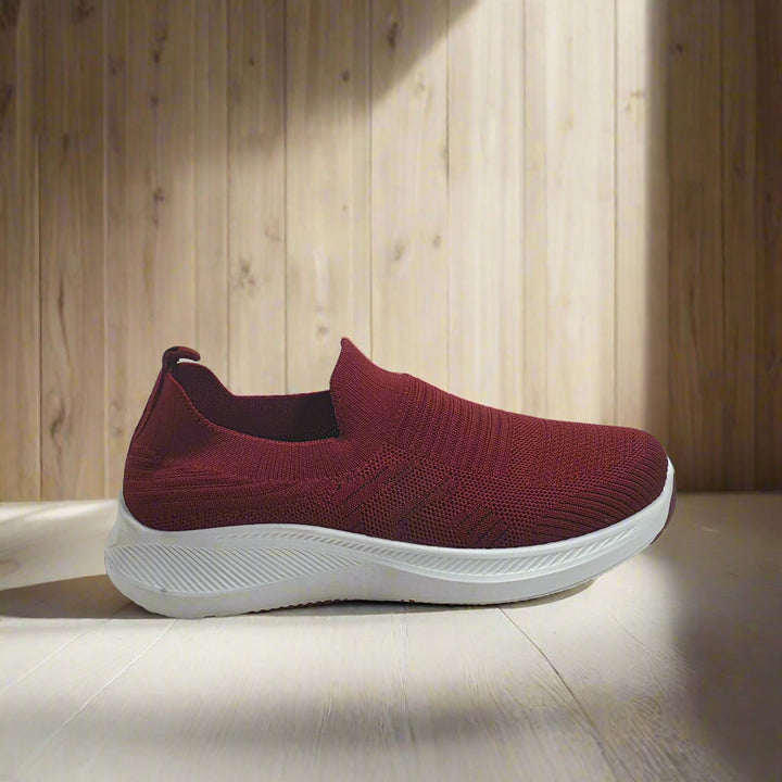 • Step out in style with these vibrant maroon sneakers designed specifically for women. Combining comfort and fashion, they add a bold splash of color to any outfit, making every step confident and eye-catching.
