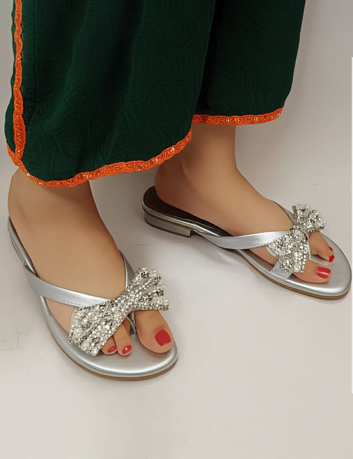 Step into luxury with this stylish women's slipper, featuring plush satin or velvet fabric adorned with sparkling embellishments like beads, sequins, or embroidery. Perfect for special occasions or adding a touch of glamour to everyday comfort, it combines sophistication with cozy wear. The intricate detailing and chic design make it a must-have for those who love to elevate their style effortlessly.