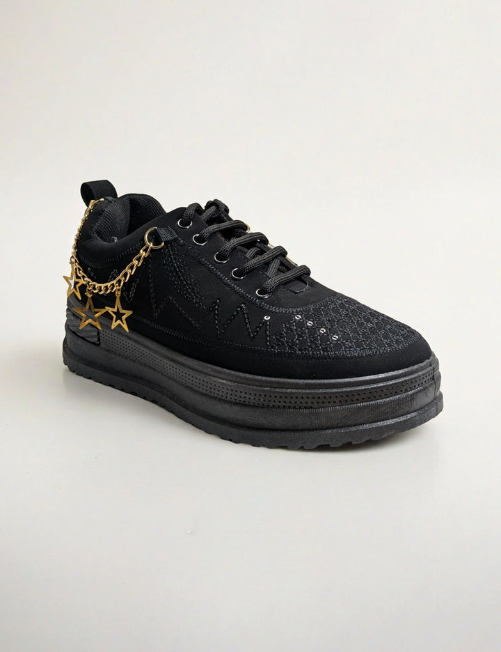 Step out with confidence in these Black Sneakers designed specifically for women. Combining sleek style and reliable comfort, they complement any outfit while supporting your every move. Perfect for daily wear, their versatile design ensures you stay trendy whether you're running errands or meeting friends. Upgrade your footwear collection with these must-have sneakers that blend durability with a modern look.