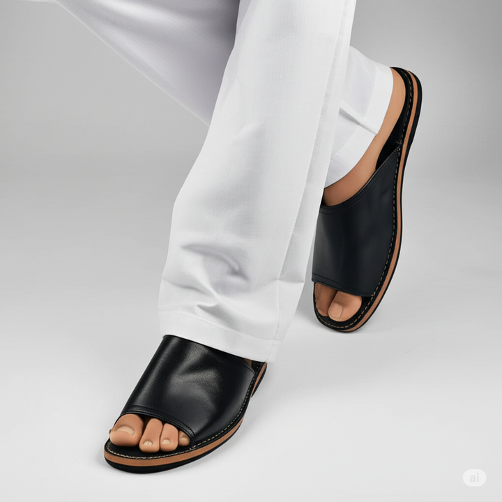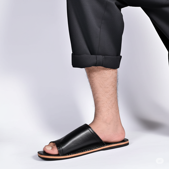Black leather Slipper For Men