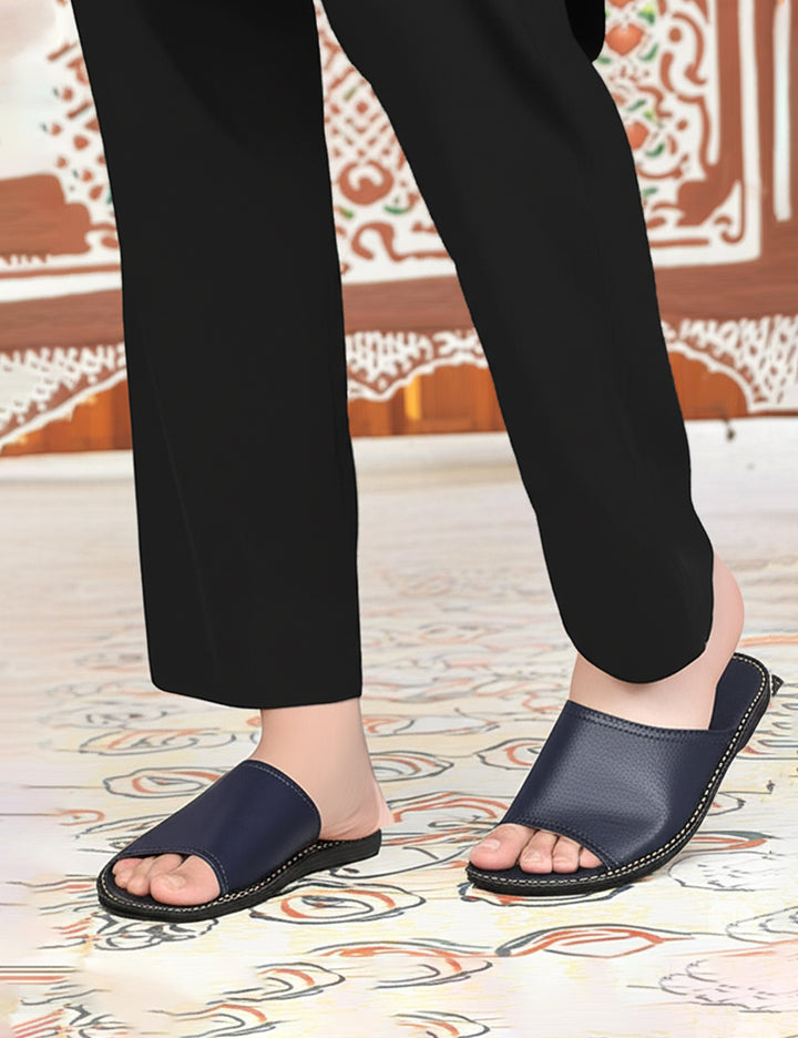Expertly crafted, these Blue Soft Slippers are made from high-quality blue leather. Enjoy ultimate comfort and style with these slippers that provide excellent support and durability. Perfect for relaxing at home or for a casual day out. Elevate your comfort and fashion game with these versatile slippers.