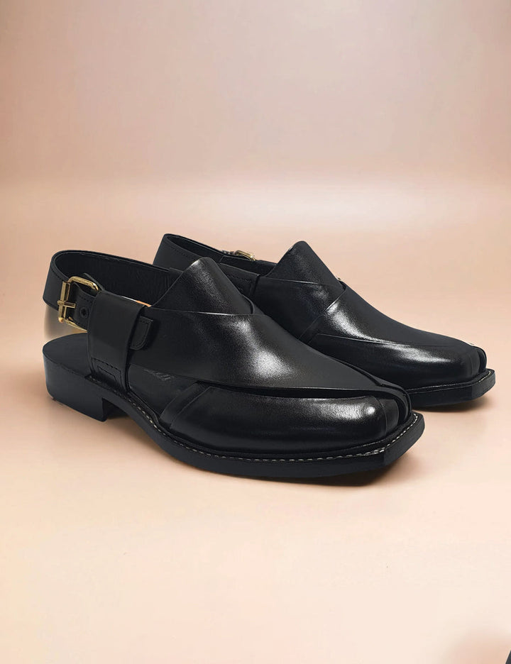 - Experience the ultimate comfort and style with our Black Peshawari for Men. Made of high-quality materials, these sandals offer a perfect fit and long-lasting wear. Combining traditional design with modern elements, these Peshawaris will elevate any outfit and make you stand out in the crowd.