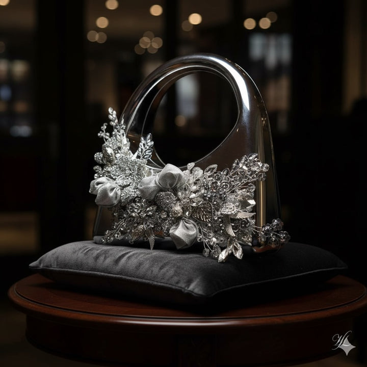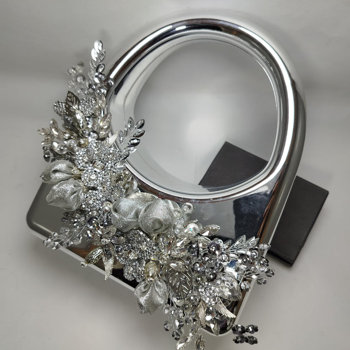 Elevate your evening look with this stunning Silver Fancy Clutch—the perfect accessory for weddings, parties, and special occasions. Crafted with meticulous attention to detail, this clutch combines sophisticated elegance with practical functionality. The lustrous silver finish catches the light beautifully, while the refined design complements any formal outfit. Whether you're carrying essentials to a gala or adding a touch of glamour to your ensemble, this clutch delivers timeless style and versatility. Make a statement with an accessory that speaks to your refined taste.
