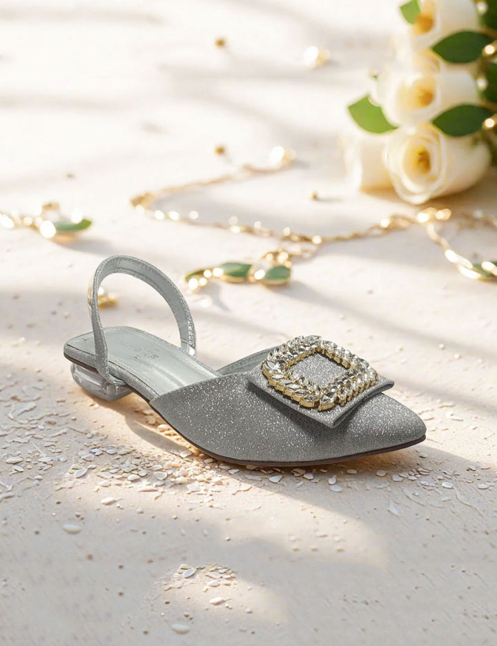 Elevate your footwear collection with these stunning Silver Fancy Sandals, the perfect blend of elegance and comfort. Crafted with a lustrous silver finish, these sandals add instant sophistication to any outfit—from casual daytime looks to evening occasions. The thoughtfully designed silhouette flatters your feet while providing reliable support for all-day wear. Whether you're heading to a celebration or simply want to feel polished, these versatile sandals deliver the glamour you deserve. Step into style and confidence with every stride.