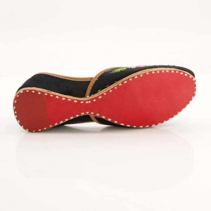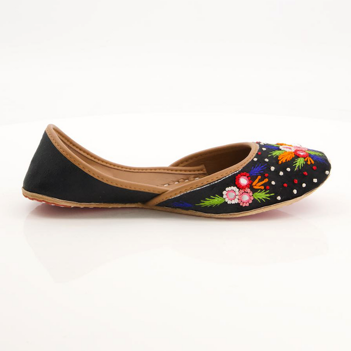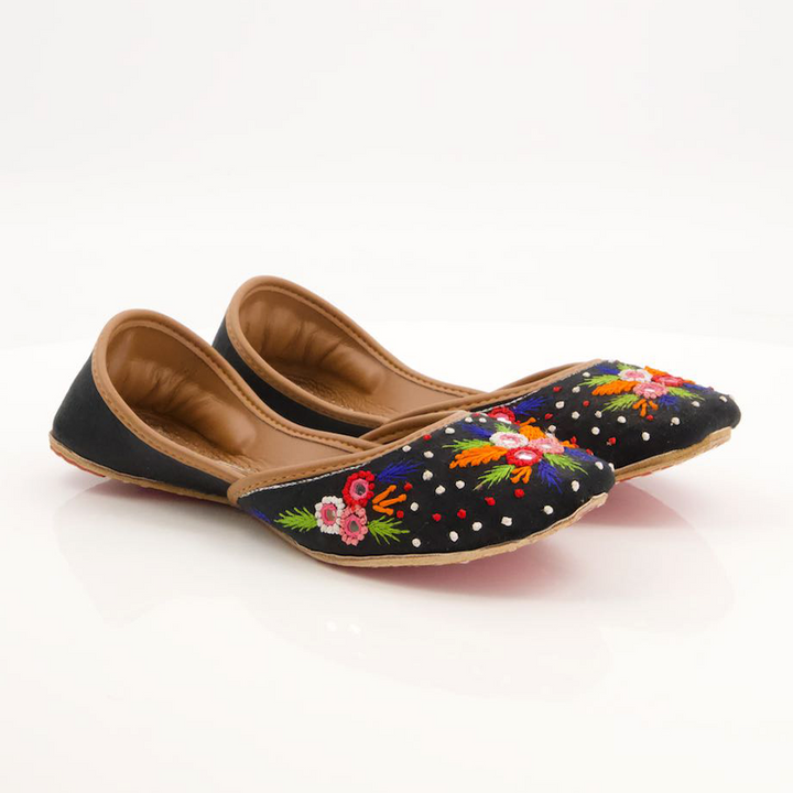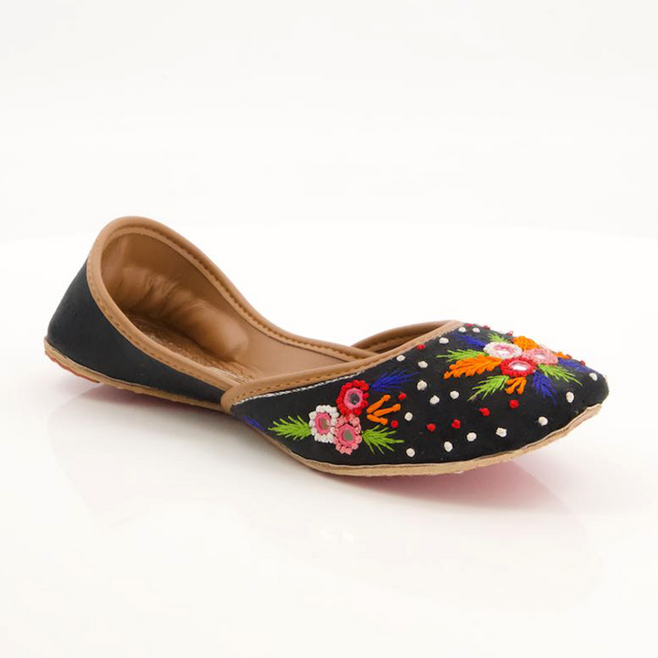 - Elevate your footwear game with our Black Multi Color Khussa for women. Each unique pair is handcrafted with intricate detailing and vibrant colors, making them truly one-of-a-kind. Step into luxury and comfort with these elegant khussas, perfect for any occasion. Experience the art of Indian craftsmanship with every step.