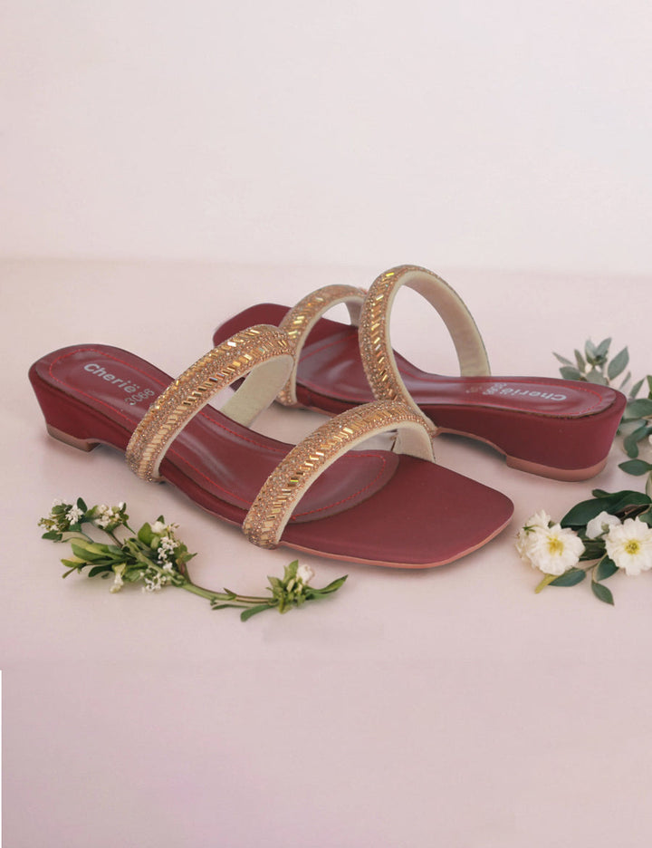 Indulge in luxury with our elegant Maroon Fancy Slippers for Women. Crafted with a sleek maroon design, these slippers are perfect for any occasion. Step into comfort and style with our premium slippers, adding a touch of sophistication to any outfit. Elevate your wardrobe and treat yourself to these exclusive slippers today.