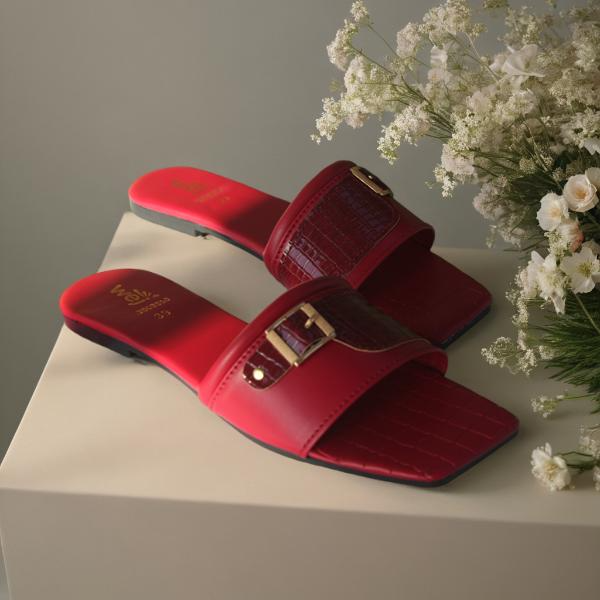 - Indulge in comfort and style with our Maroon Flat Slippers for women. These elegant slippers feature a sleek and sophisticated design, perfect for any occasion. Crafted with the highest quality materials, they provide ultimate comfort and support for your feet. Relax in luxury with every step.