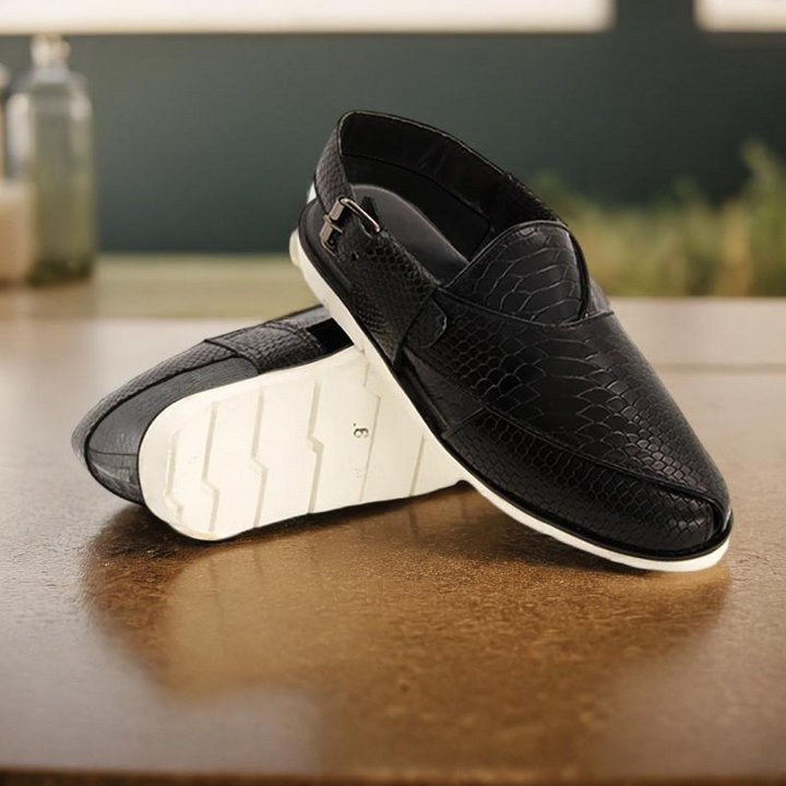 - Black Peshawari For Men. Note: These -Peshawari are made to give your feet a perfect fuller look and to accompany a statement style to your dress and will make your feet comfortable and a signature for your casual and formal look. Amazingly soft sole to keep you comfortable. Designed to go with both casual and formal looks. Attractive color to compliment any outfit. Hand-crafted with love and care for our customers. Breathable design to keep your feet fresh.