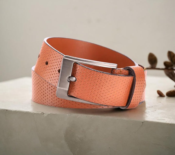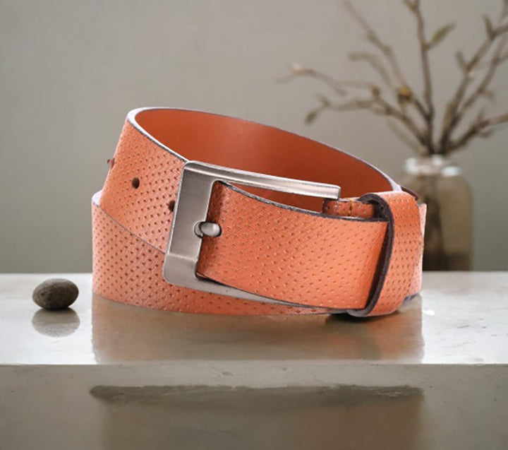 - Complete your sophisticated look with our Mustered Leather Belt for Men. Crafted from premium leather, this belt offers a touch of luxury and elegance. Perfect for both casual and formal occasions, it's a versatile and essential accessory for any gentleman's wardrobe.