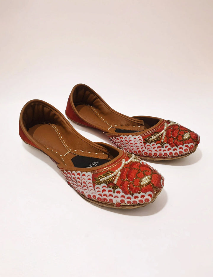 - Elevate your style with our Red Fancey Khussa! Handcrafted with intricate embroidery, this shoe adds a touch of elegance to any outfit. Stand out from the crowd with its vibrant red color and comfortable fit. Perfect for any occasion, our Khussa is a must-have for any fashion-forward individual.
