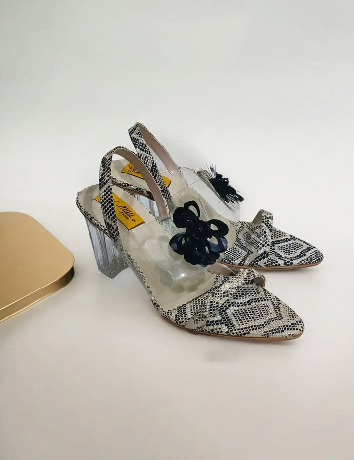 - Elevate your style game with these Black&White Flower Block Heels. The sleek black and white design, adorned with beautiful flowers, will add a touch of elegance to any outfit. The sturdy block heel provides comfort and stability all day long. Make a statement and turn heads with these stunning heels.