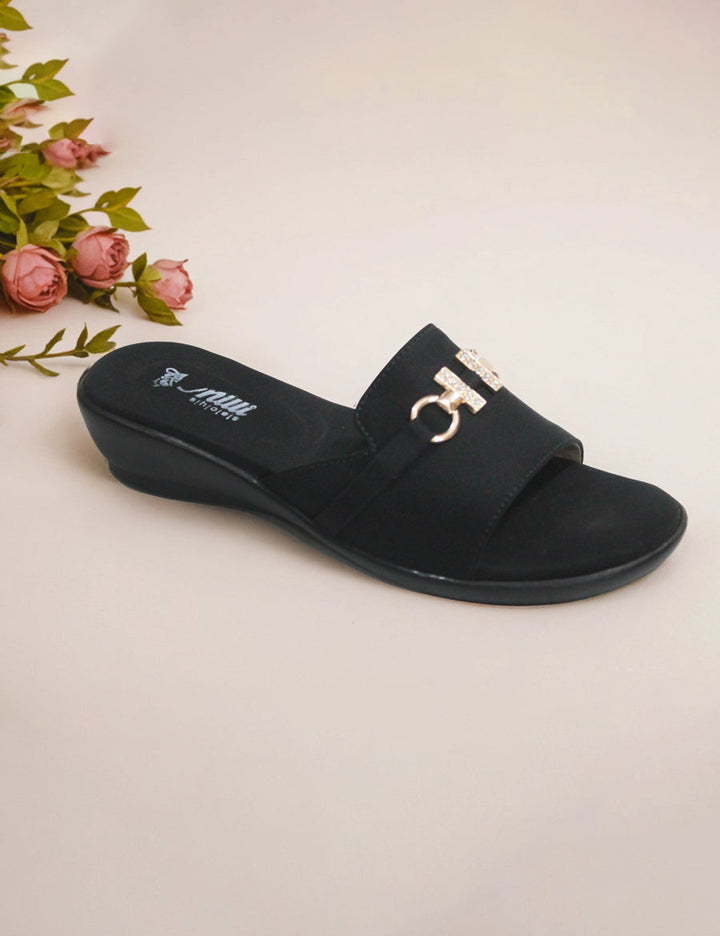 Step out in style and comfort with our Black Slippers for Women. Made with high-quality material, these slippers provide a cozy fit and durable wear. Perfect for any outfit, elevate your wardrobe with these sleek and versatile slippers. Treat your feet to the ultimate comfort and look effortlessly chic at the same time!