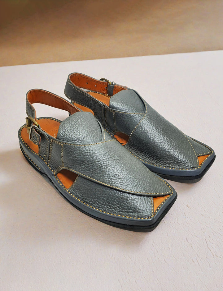- Step into tradition with the Zardari Chappal in grey, crafted for men who value both style and comfort. This classic footwear blends durable materials with a timeless design, offering a perfect fit for everyday wear. Elevate your look effortlessly while enjoying the breathable, sturdy construction that keeps you comfortable all day long. Make a statement with every step in these iconic chappals.